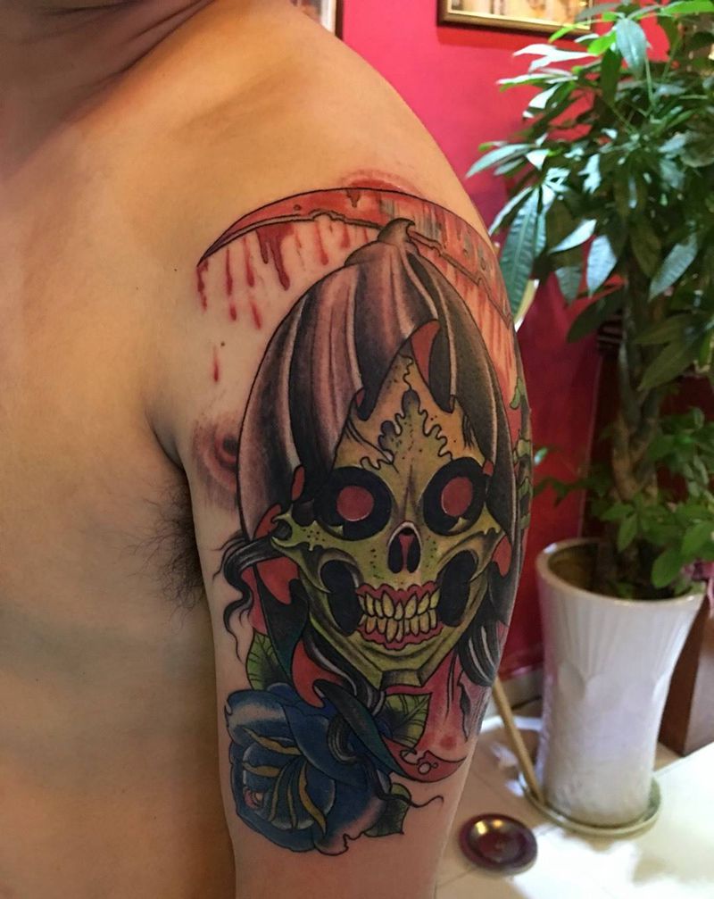• 纹身吧推荐的披肩图腾半胛纹身图案作品展示