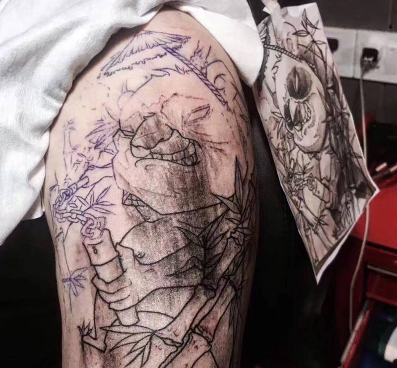 熊猫纹身图片_动物原创彩色成品手臂背部纹身图案