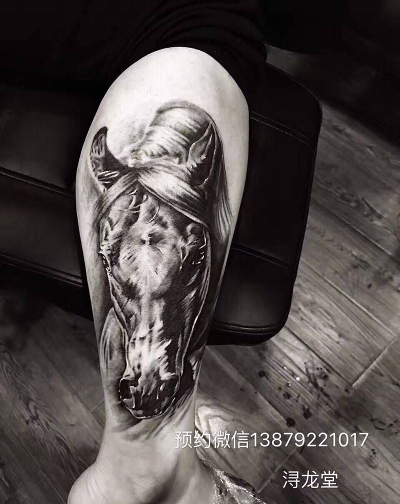 当前位置: 首页 >江西省九江市纹身店-浔龙堂纹身店纹身图案>马纹身图片_腿部手臂写实动物原创纹身图案
