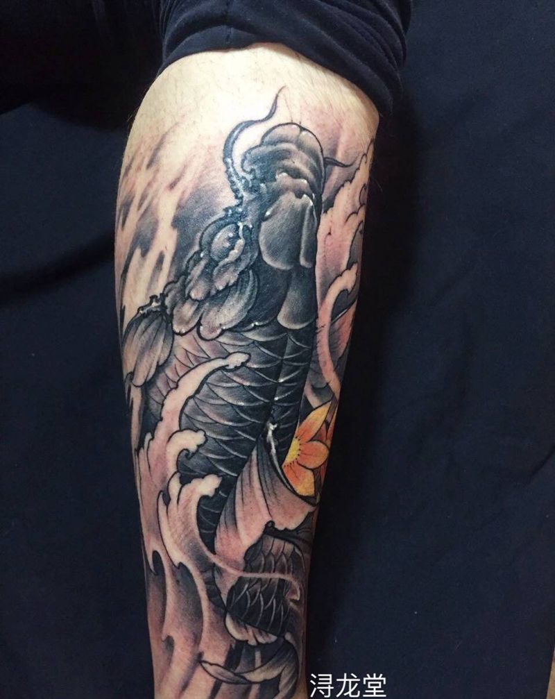当前位置: 首页 >江西省九江市纹身店-浔龙堂纹身店纹身图案>招财锦鲤鱼纹身图片_传统动物原创彩色手臂脚部腿部纹身图案