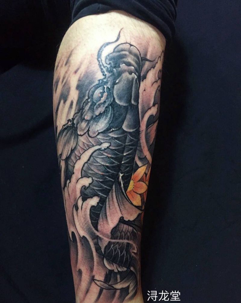 当前位置: 首页 >江西省九江市纹身店-浔龙堂纹身店纹身图案>招财锦鲤鱼纹身图片_传统动物原创彩色手臂脚部腿部纹身图案