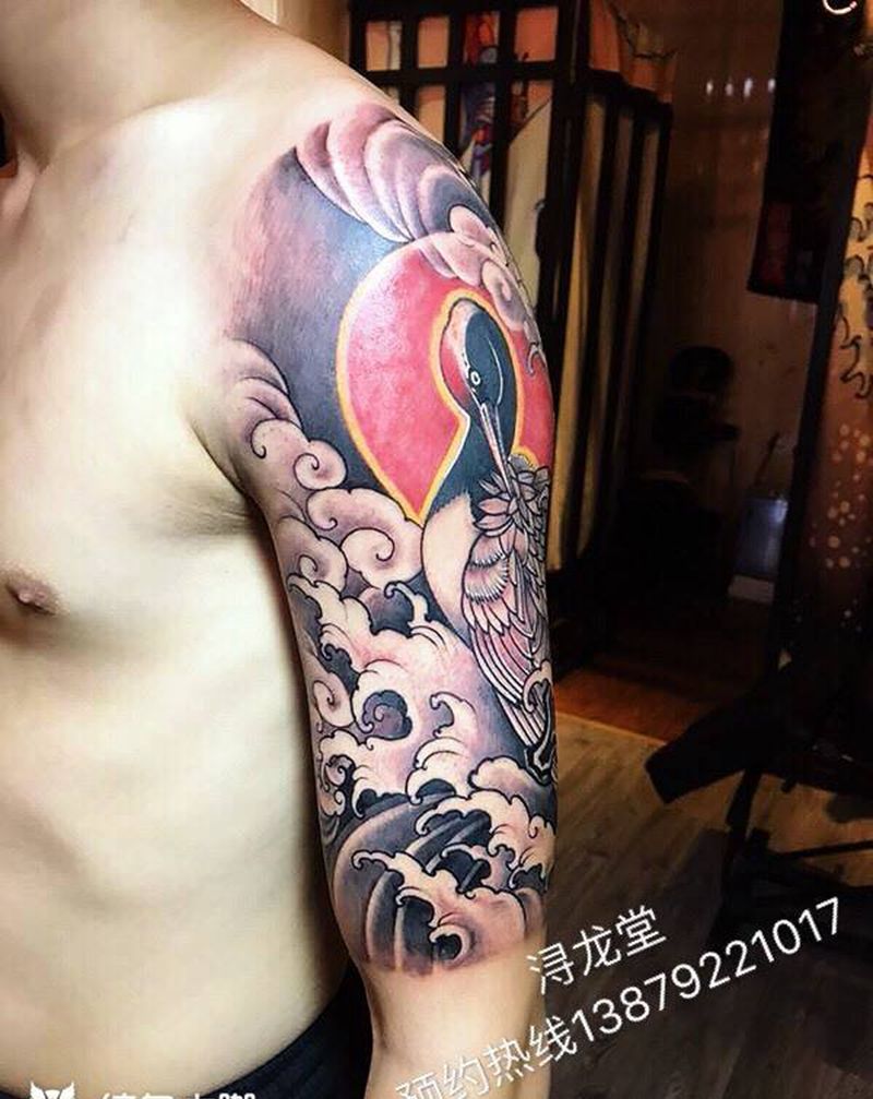 当前位置: 首页 >江西省九江市纹身店-浔龙堂纹身店纹身图案>大手臂鹤纹身图片