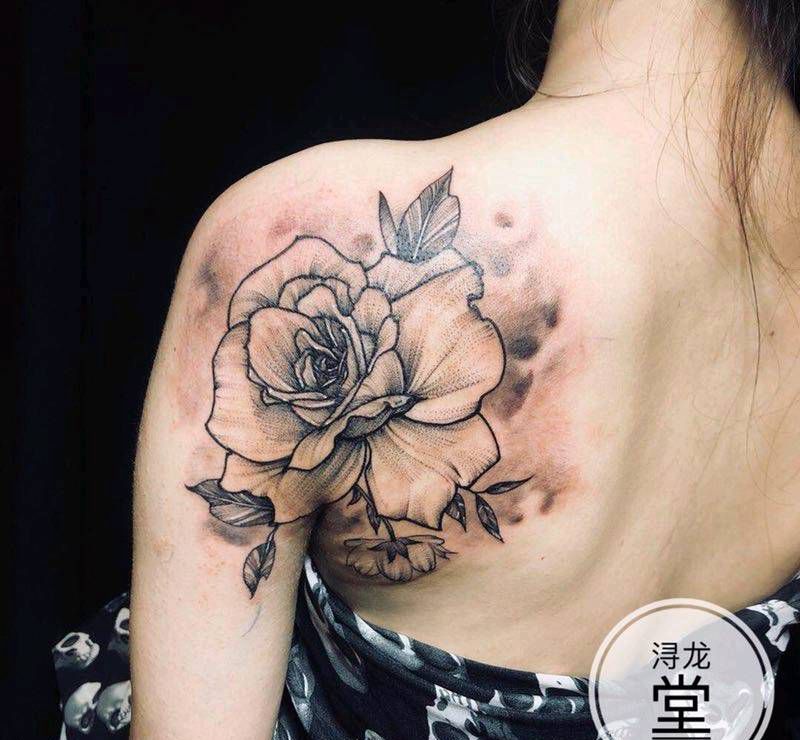 • 女性大花胸纹身_43张霸气漂亮的女性大花胸纹身图案作品