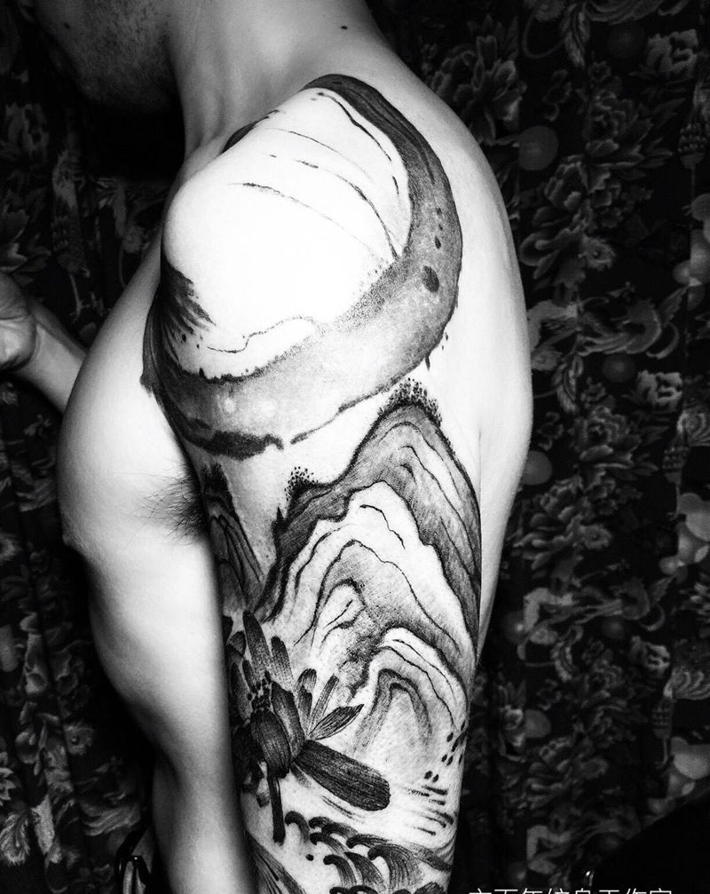 当前位置: 首页 >江西省赣州市纹身店-文百年纹身艺术工作室纹身图案>水墨风格包上臂纹身图片