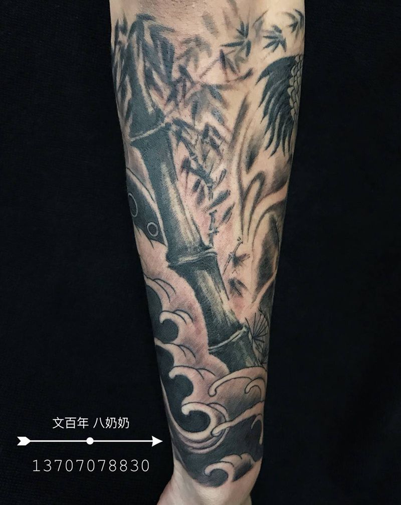 当前位置: 首页 >江西省赣州市纹身店-文百年纹身艺术工作室纹身图案>仙鹤包小臂纹身图片
