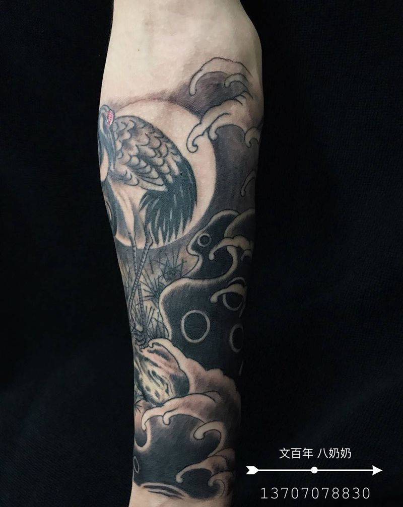当前位置: 首页 >江西省赣州市纹身店-文百年纹身艺术工作室纹身图案>仙鹤包小臂纹身图片