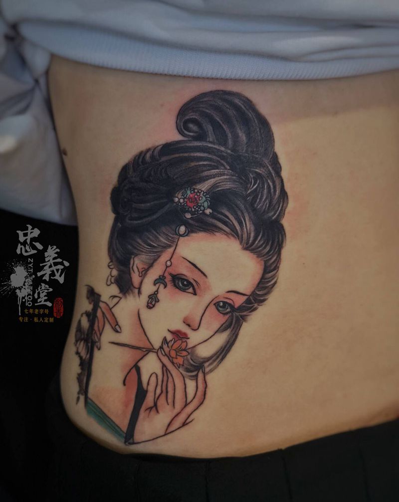 时尚性感的腹部莲花纹