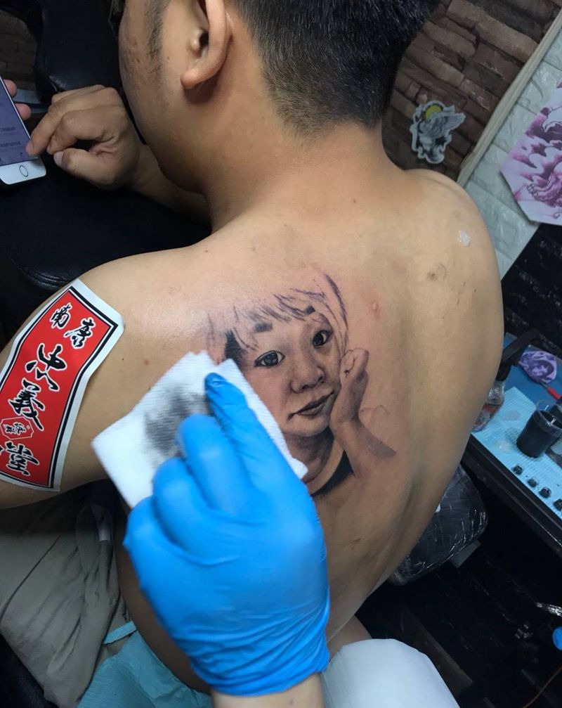 当前位置: 首页 >江西省赣州市纹身店-南康忠义堂纹身机构纹身图案>肖像纹身图片_成品背部肖像原创纹身图案