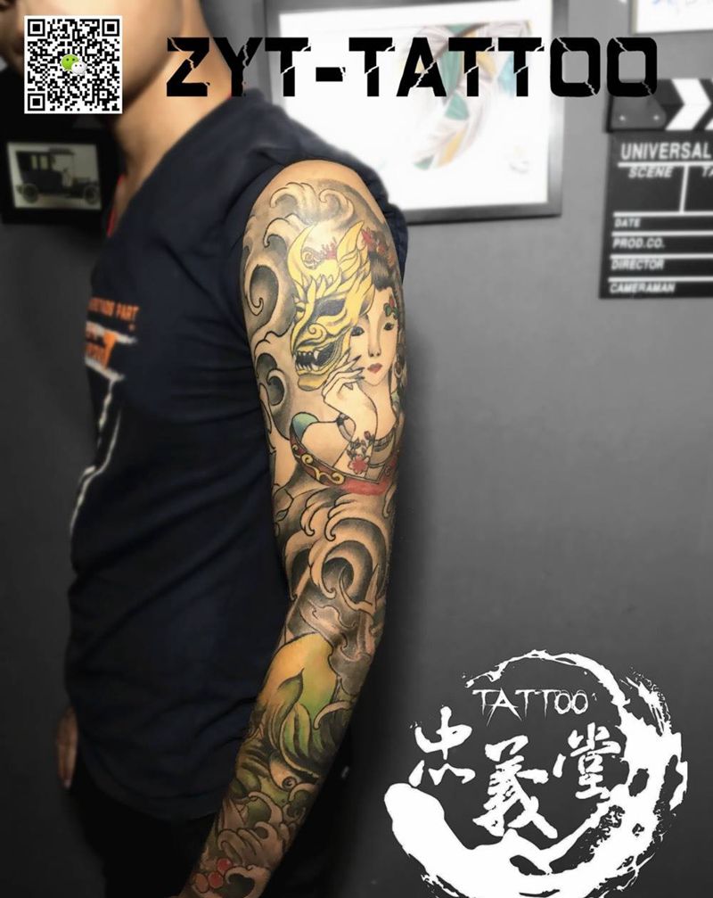 当前位置: 首页 >江西省赣州市纹身店-南康忠义堂纹身机构纹身图案>传统花臂纹身图片_成品手臂传统人物遮盖纹身图案