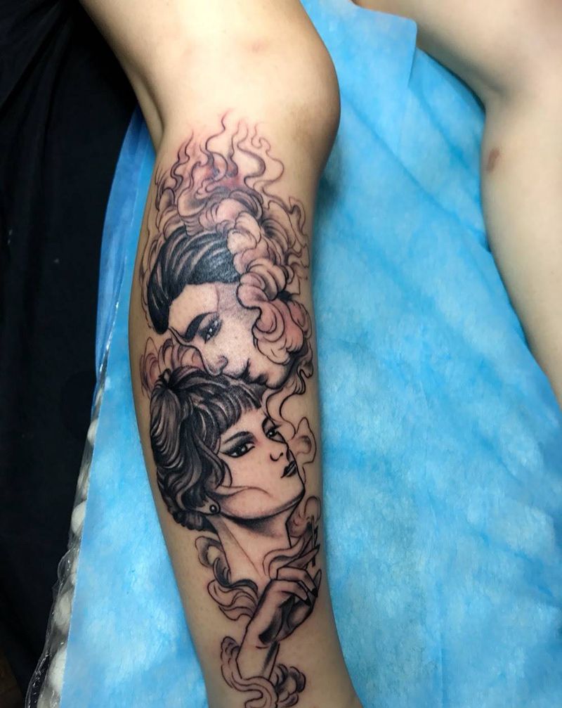 当前位置: 首页 >江西省赣州市纹身店-南康忠义堂纹身机构纹身图案>烟客纹身图片_成品肩部手臂几何人物字符纹身图案