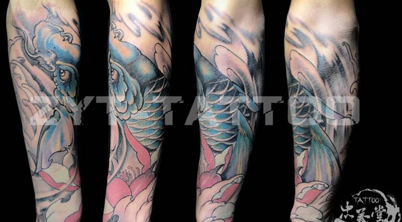 传统彩色鲤鱼纹身图片_原创成品手臂手部传统动物纹身图案