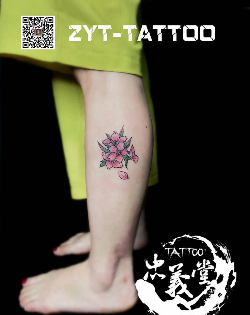 当前位置: 首页 >江西省赣州市纹身店-南康忠义堂纹身机构纹身图案>樱花纹身图片_成品原创脚部腿部清新植物纹身图案