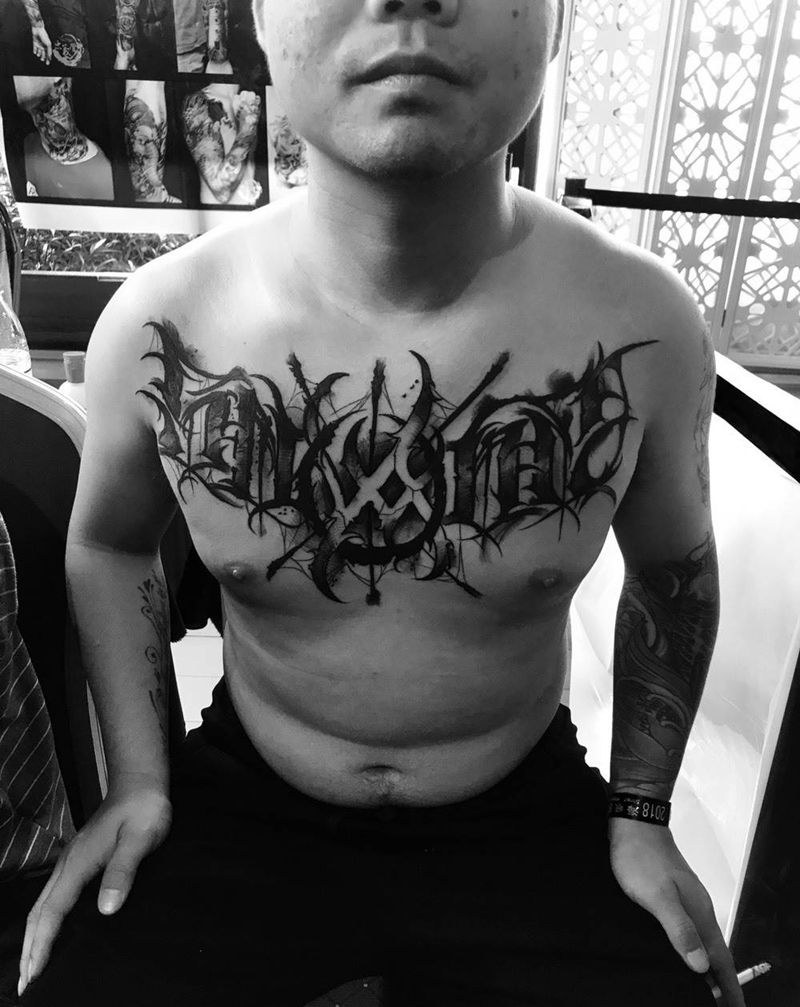 奇卡诺纹身图片_胸部花体字纹身图案