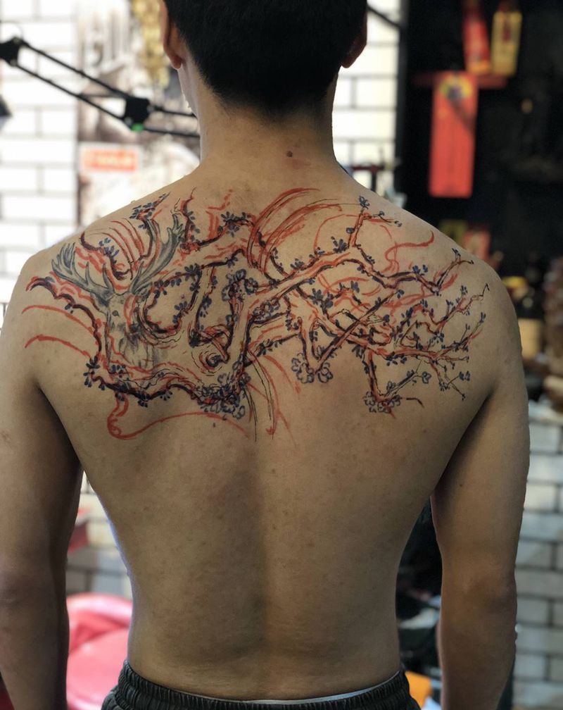 当前位置: 首页 >江西省赣州市纹身店-南康忠义堂纹身机构纹身图案>梅花遮盖纹身图片_背部新传统纹身图案