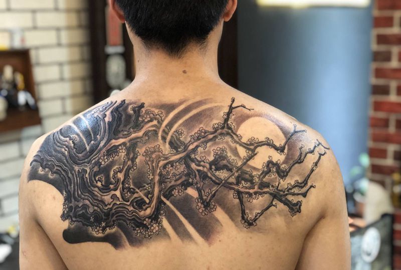 当前位置: 首页 >江西省赣州市纹身店-南康忠义堂纹身机构纹身图案>梅花遮盖纹身图片_背部新传统纹身图案