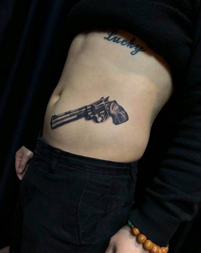 当前位置: 首页 >江西省赣州市纹身店-南康忠义堂纹身机构纹身图案>枪纹身图片_腹部欧美写实纹身图案
