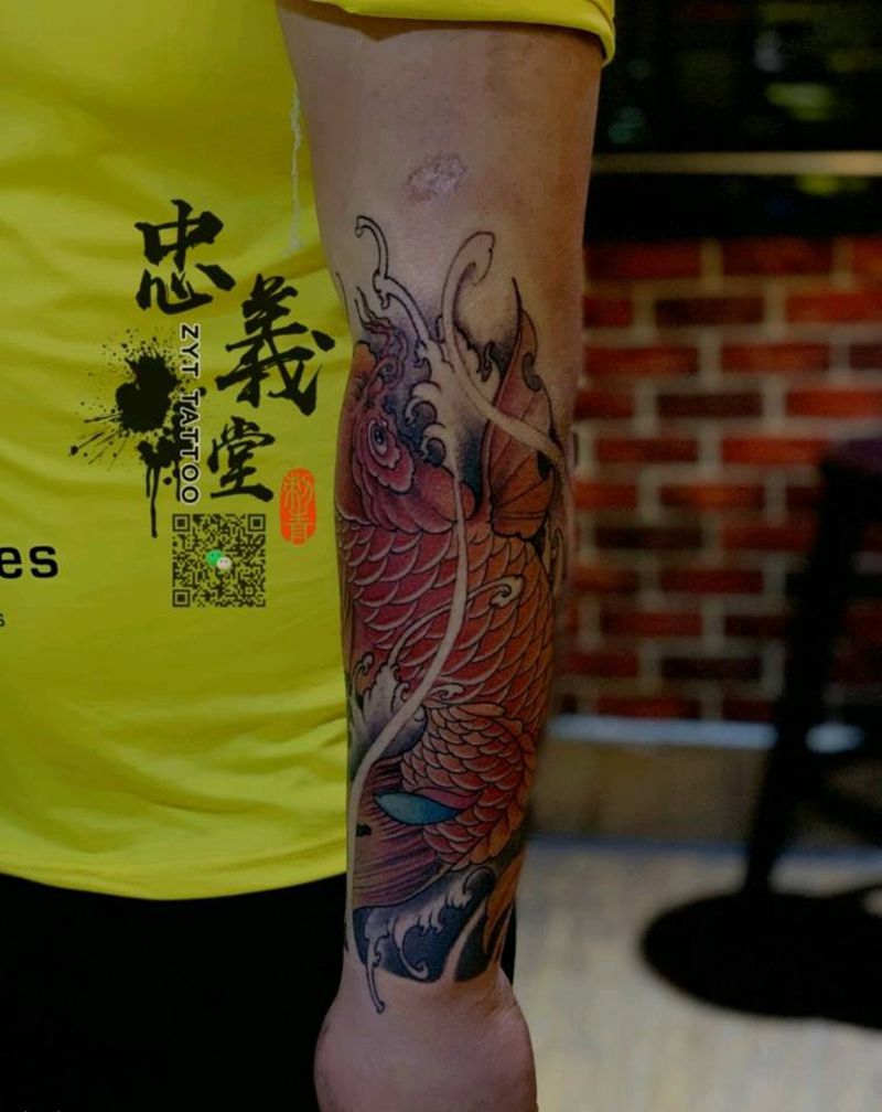 当前位置: 首页 >江西省赣州市纹身店-南康忠义堂纹身机构纹身图案>鲤鱼纹身图片_手部新传统纹身图案