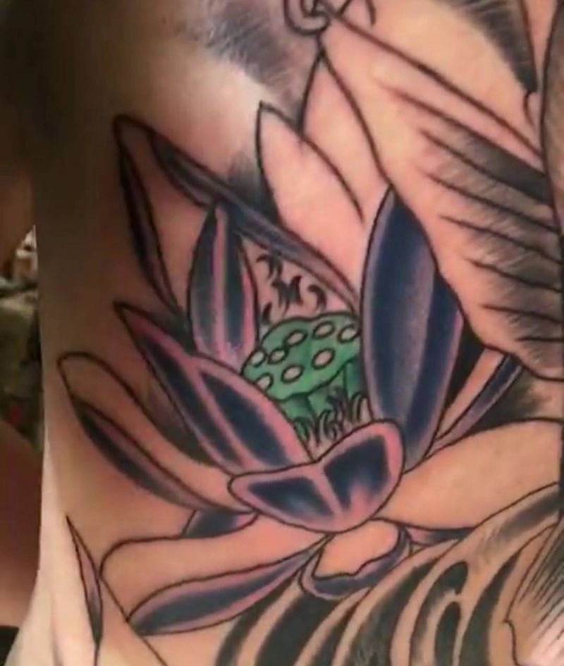 • 时尚性感的腹部莲花纹身图案