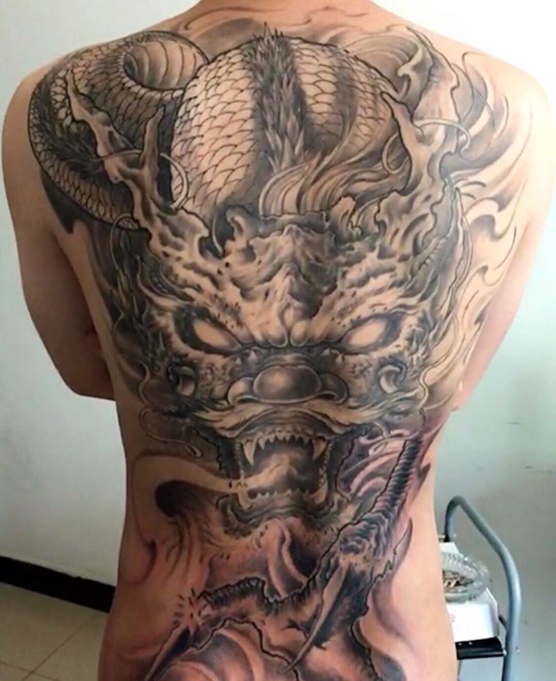 黑灰满背纹身图案