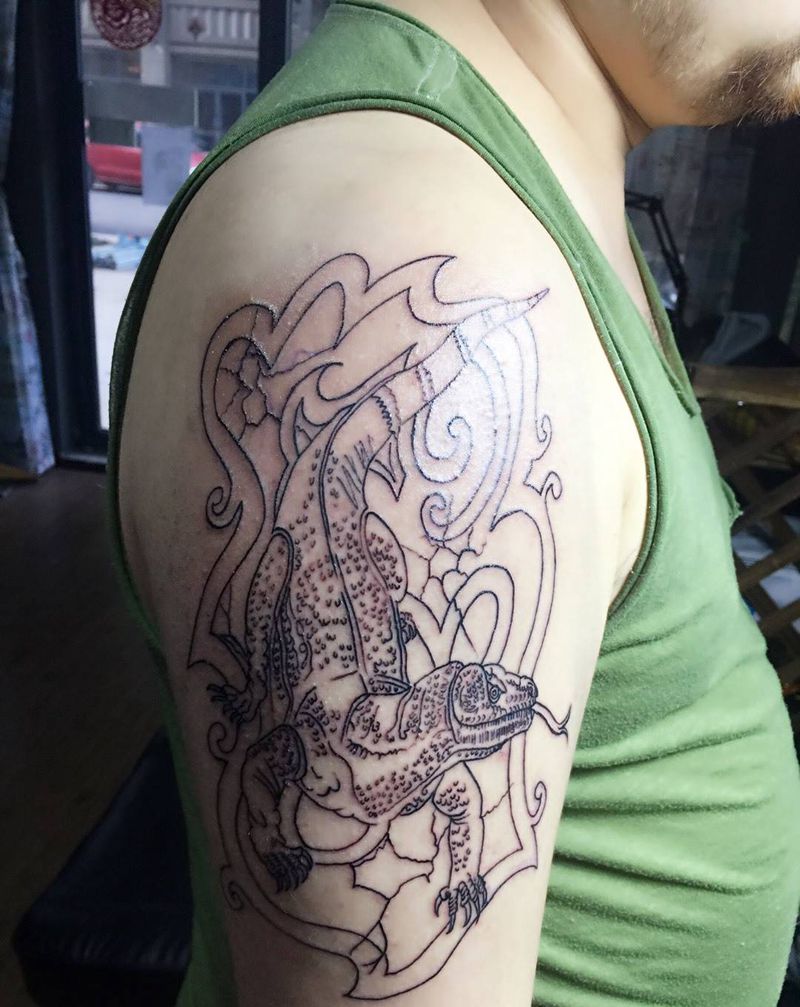 当前位置: 首页 >江西省九江市纹身店-刺客纹身会馆纹身图案>蜥蜴 线条待上色纹身图片