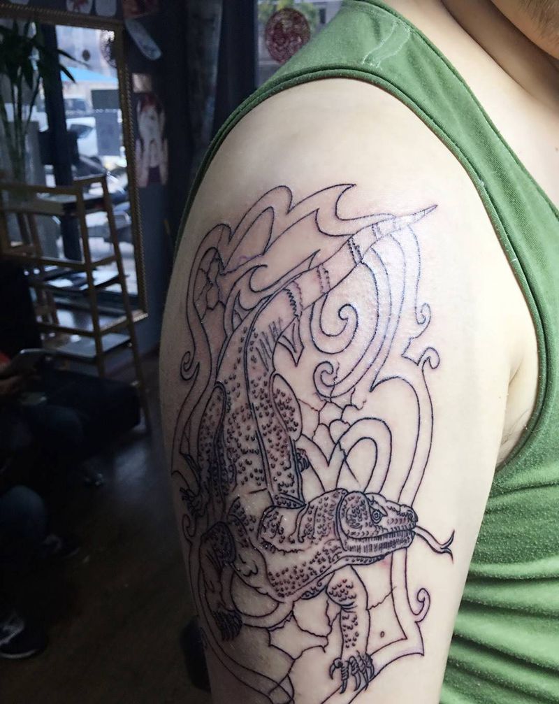 蜥蜴 线条待上色纹身图片