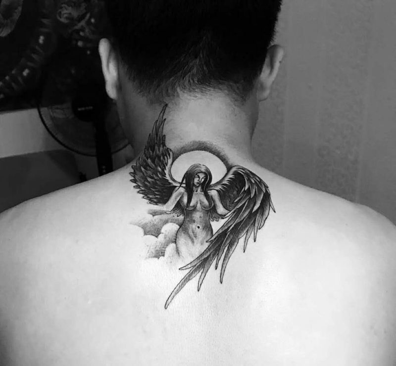 黑灰满背纹身图案