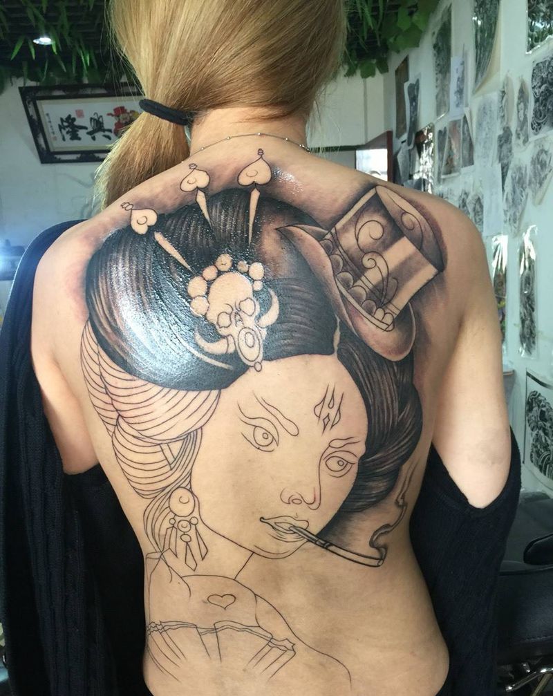 艺妓未完成纹身图片