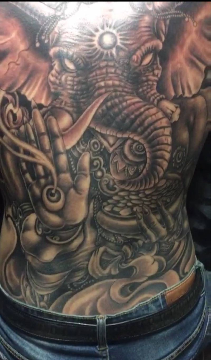 当前位置: 首页 >江西省九江市纹身店-刺客纹身会馆纹身图案>象神纹身图片_成品背部传统鬼神纹身图案
