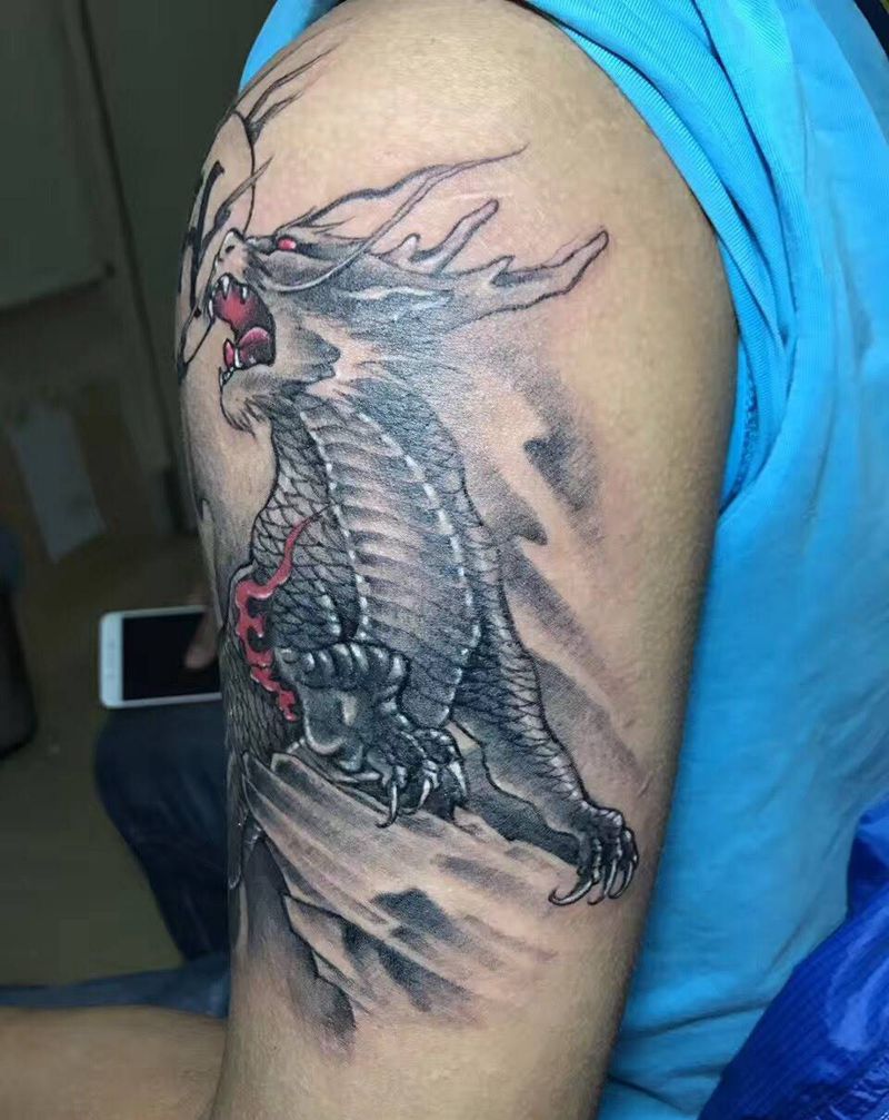 • T网红王老大花腿龙纹身图片_腿部新传统纹身图案