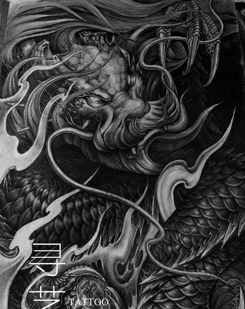 当前位置: 首页 >江西省吉安市纹身店-寻刺青工作室纹身图案>本店龙素描纹身图片_背部新传统龙纹身图案