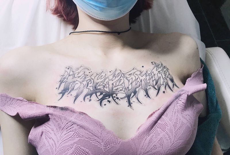 当前位置: 首页 >江西省赣州市纹身店-青临刺青纹身图案>锁骨花体字(freedom)纹身图片_胸部花体字纹身图案