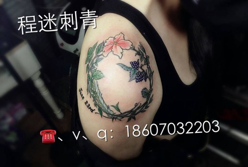 当前位置: 首页 >江西省上饶市纹身店-程迷刺青纹身图案>小图纹身图片_成品肩部传统欧美静物植物几何原创纹身图案