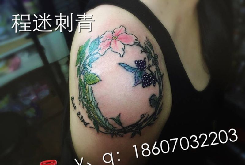 当前位置: 首页 >江西省上饶市纹身店-程迷刺青纹身图案>小图纹身图片_成品肩部传统欧美静物植物几何原创纹身图案
