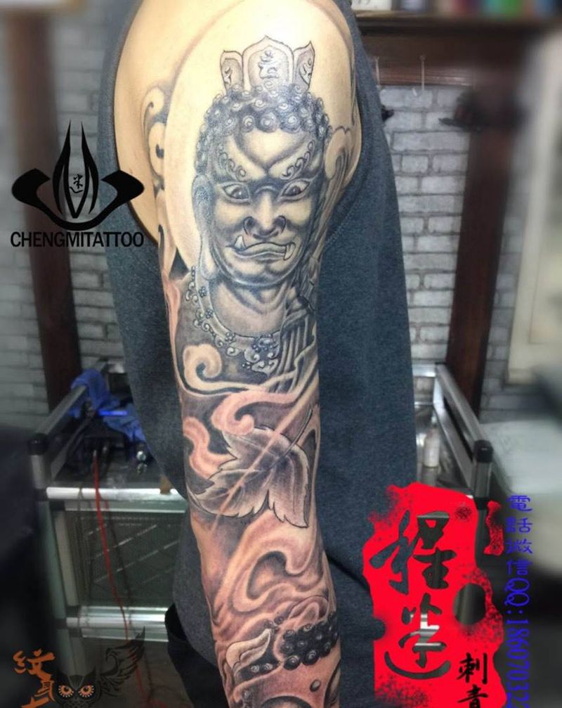 当前位置: 首页 >江西省上饶市纹身店-程迷刺青纹身图案>明王花臂纹身图片