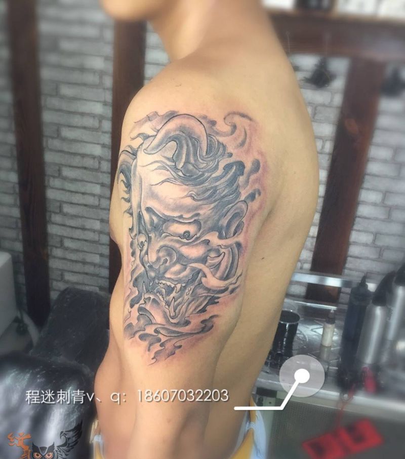 当前位置: 首页 >江西省上饶市纹身店-程迷刺青纹身图案>般诺纹身图片_成品原创鬼神人物传统手臂手部宗教纹身图案