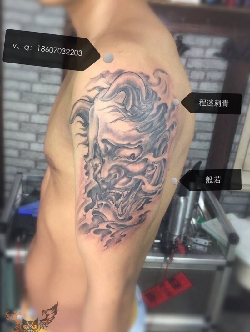当前位置: 首页 >江西省上饶市纹身店-程迷刺青纹身图案>般诺纹身图片_成品原创鬼神人物传统手臂手部宗教纹身图案