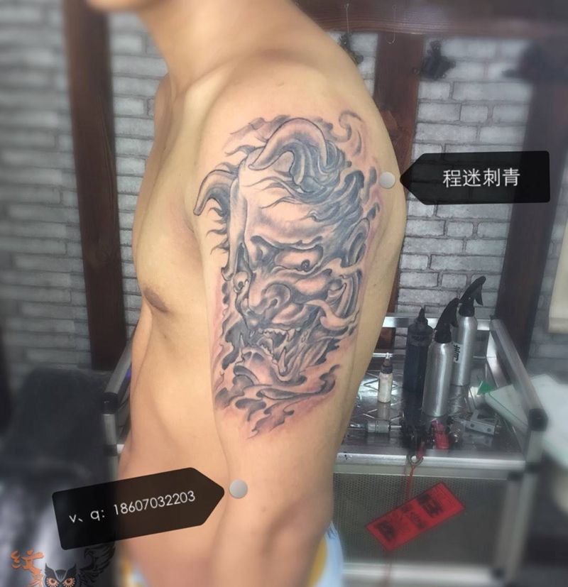 当前位置: 首页 >江西省上饶市纹身店-程迷刺青纹身图案>般诺纹身图片_成品原创鬼神人物传统手臂手部宗教纹身图案