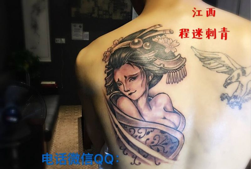 艺妓纹身图片_手稿成品背部肩部肖像人物纹身图案