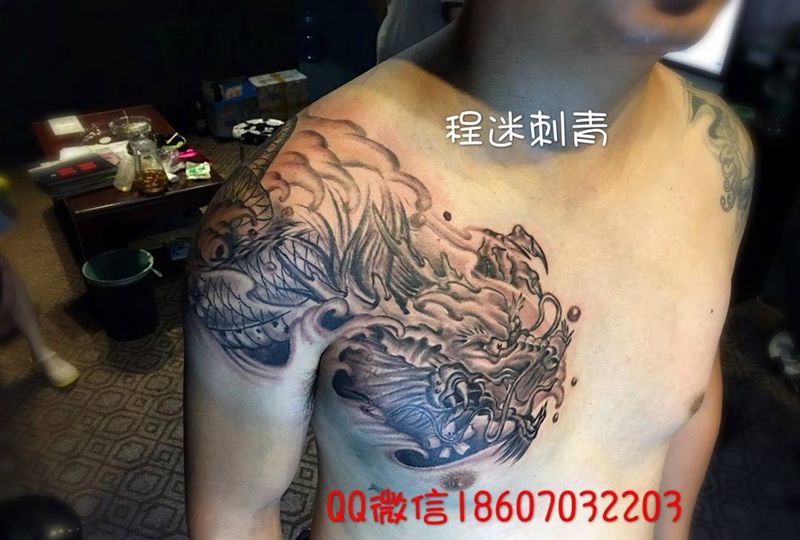 当前位置: 首页 >江西省上饶市纹身店-程迷刺青纹身图案>半胛龙纹身图片
