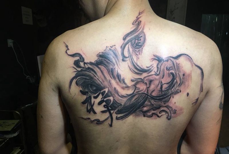 • 黑灰满背纹身图案