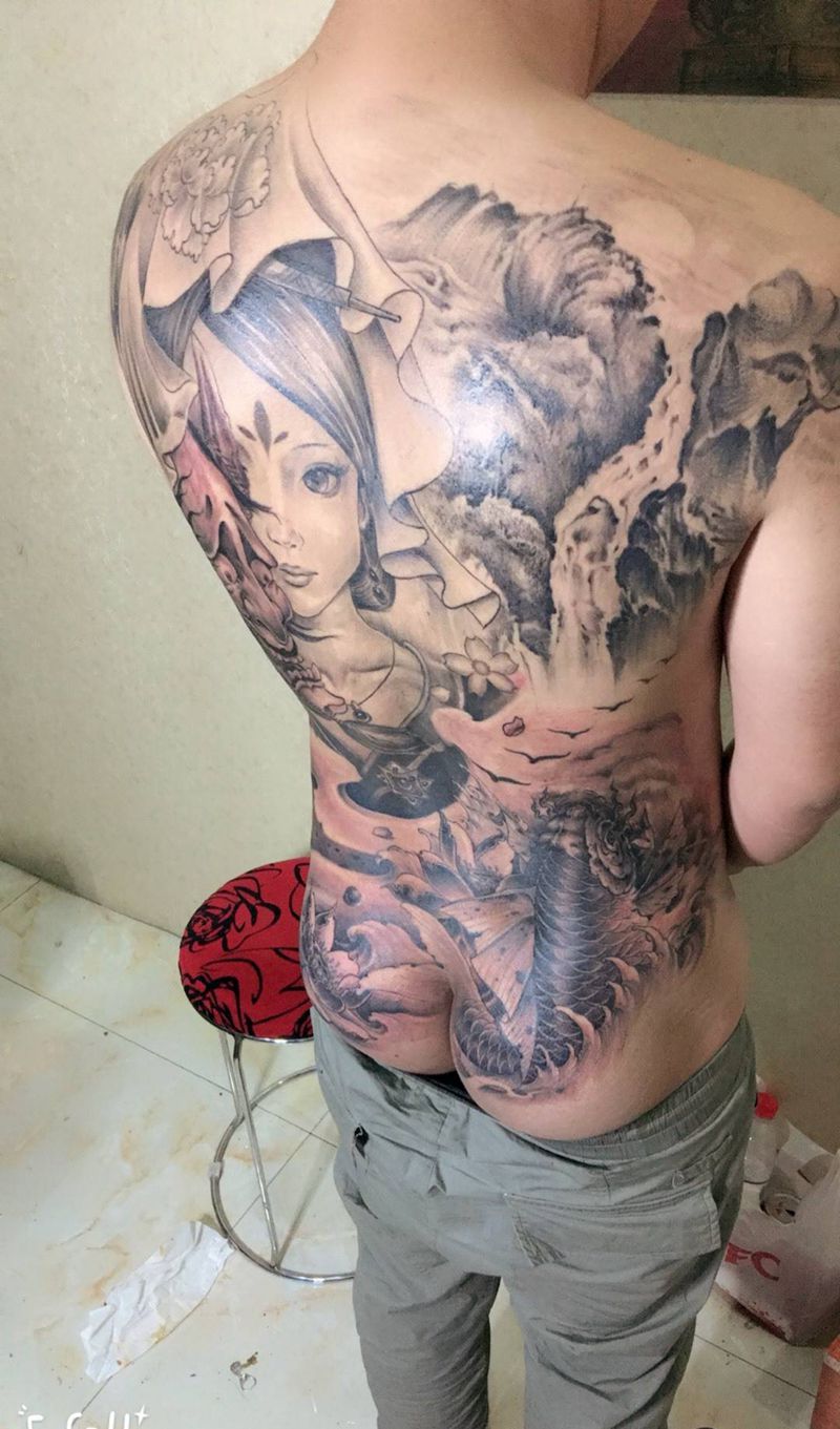 当前位置: 首页 >江西省上饶市纹身店-程迷刺青纹身图案>满背艺妓纹身图片