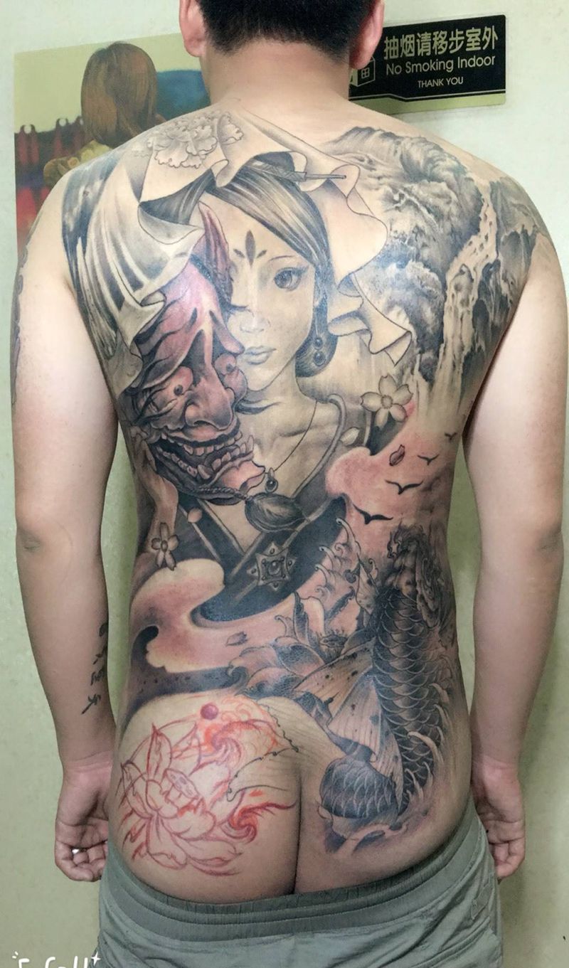 当前位置: 首页 >江西省上饶市纹身店-程迷刺青纹身图案>满背艺妓纹身图片