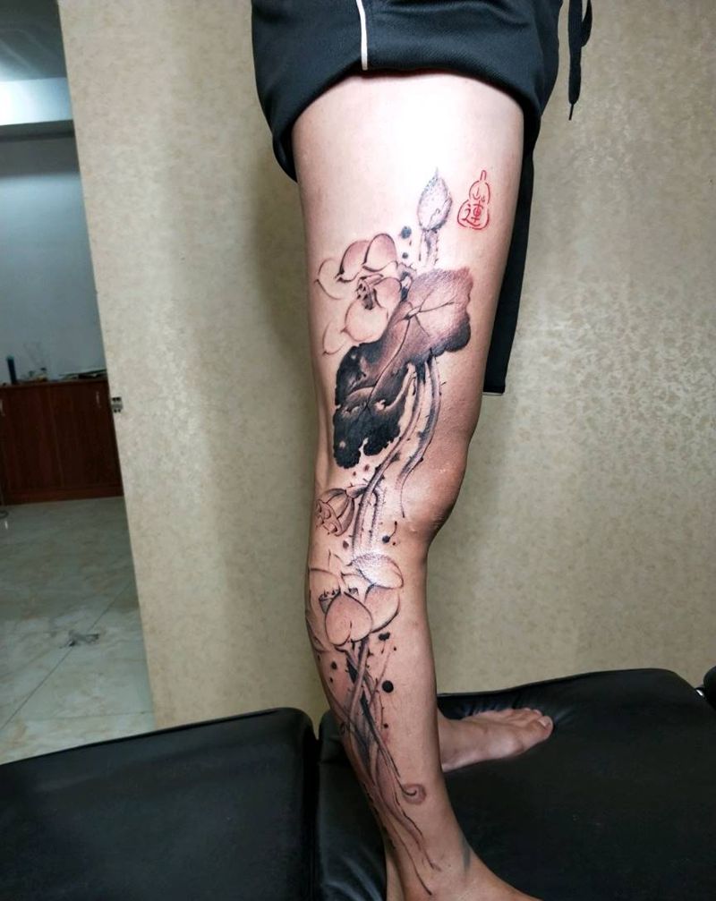 当前位置: 首页 >江西省上饶市纹身店-程迷刺青纹身图案>原创水墨莲花纹身图片