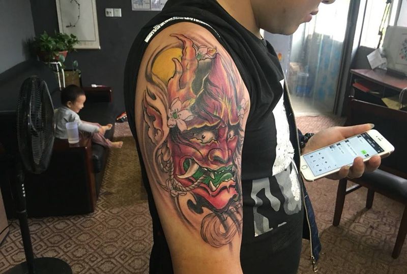 当前位置: 首页 >江西省上饶市纹身店-程迷刺青纹身图案>大臂般若遮盖纹身图片
