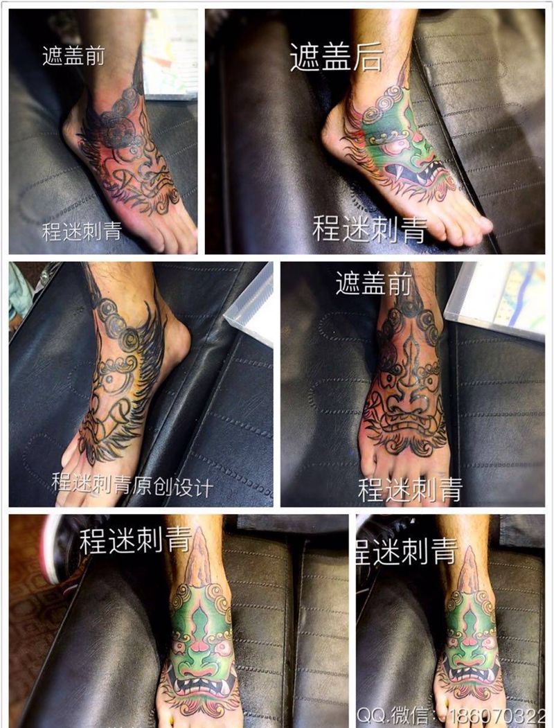 当前位置: 首页 >江西省上饶市纹身店-程迷刺青纹身图案>脚背唐狮遮盖纹身图片