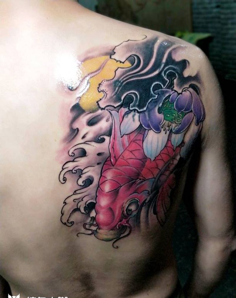 鲤鱼遮盖纹身图片_肩部传统动物原创成品纹身图案