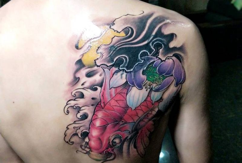 鲤鱼遮盖纹身图片_肩部传统动物原创成品纹身图案