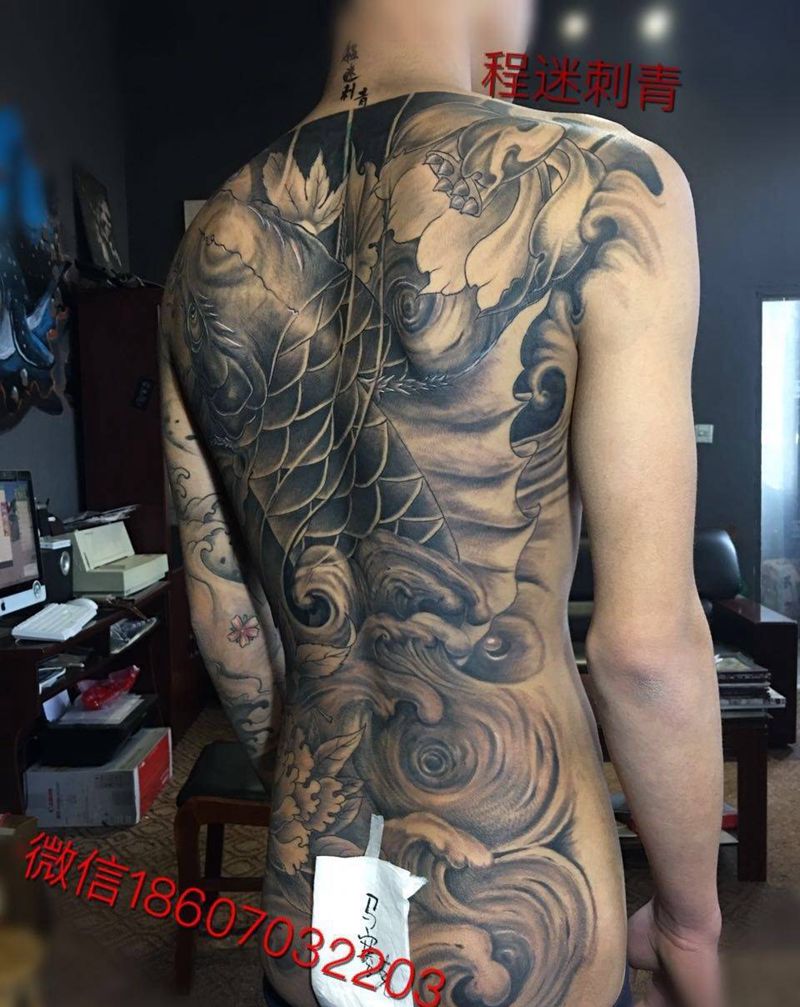 原创满背鲤鱼纹身图片
