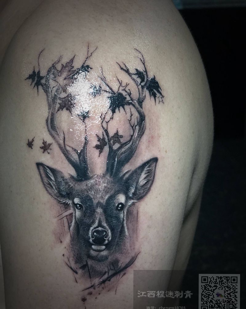 当前位置: 首页 >江西省上饶市纹身店-程迷刺青纹身图案>麋鹿纹身图片_手部手臂新传统点刺麋鹿鹿纹身图案