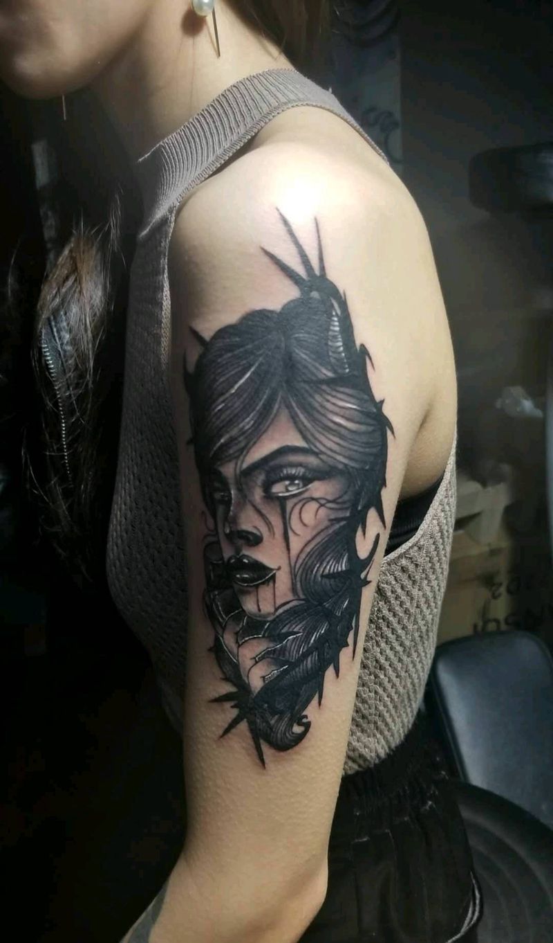 • 纹身吧推荐的披肩图腾半胛纹身图案作品展示